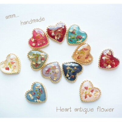 樹脂イヤリング ピアス ドライフラワー 花 ファー ハート 金箔 パール アンティーク風 レトロ おしゃれ かわいい レディース 秋 冬 金属アレルギー対応 チタンピアス バックキャッチ 10カラー 13カラー amm