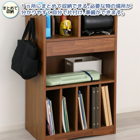 ランドセルラック 1人用/2人用 2個置き可能 引出し付き 本棚 ブラウン リビングワゴン 子供部屋 収納 クロシオ 代金引換不可おすすめのポイントランドセル2個置き対応。