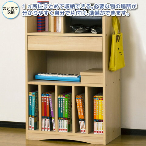 ランドセルラック 1人用/2人用 2個置き可能 引出し付き 本棚 ナチュラル リビングワゴン 子供部屋 収納 こどもの片付け習慣に 代金引換不可