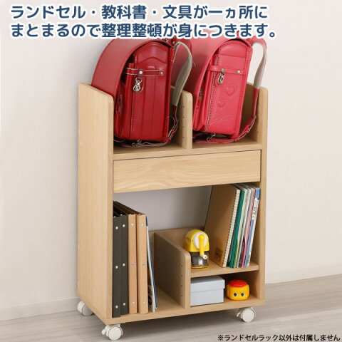 ランドセルラック 2個置き可能 引出し付き 本棚 ナチュラル キャスター付き リビングワゴン 1人用/2人用 子供部屋 収納 クロシオ 代金引換不可※ランドセルラック以外は付属しません。