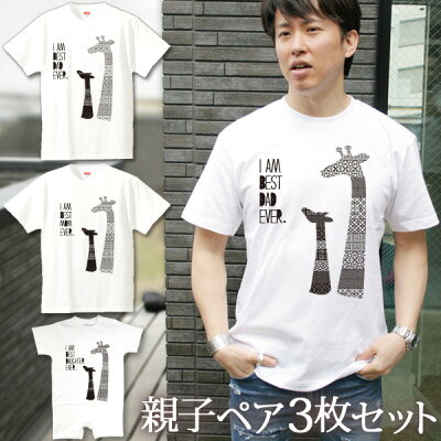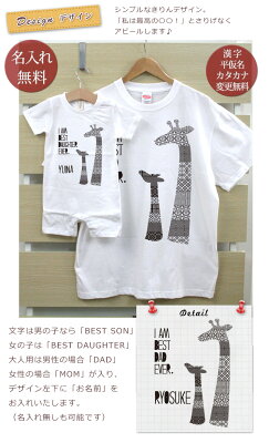 親子 ペアルック 名前入り お揃い 半袖Tシャツ&ロンパース 親子ペア3枚ファミリーセット きりんの親子 ペア 親子コーデ リンクコーデ 男の子 女の子 キッズ ママへ パパへ 母の日 父の日 綿婚式 夏 運動会 おしゃれ おもしろ 【名入れ無料】 【ココロコ】