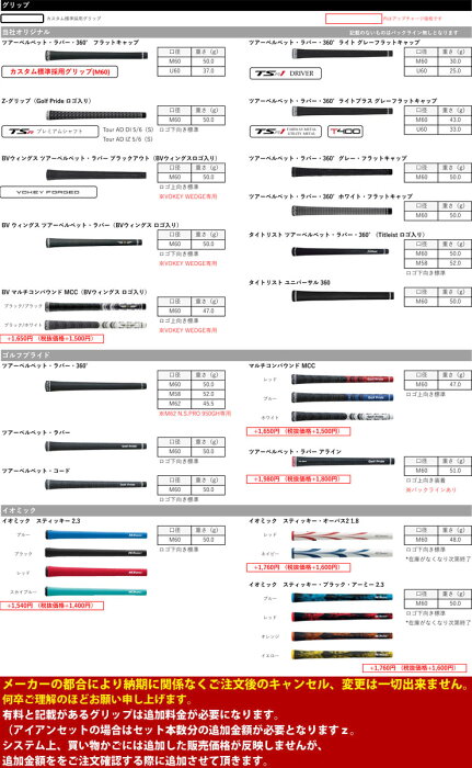 注意事項 ※タイトリスト専用シャフトについては、先端カットでの対応となります。