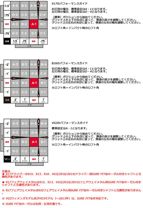 ※ご指定頂いたポジションとは別のポジションにした場合、 場合によってはアドレス時にシャフトロゴが上面や側面になる事が御座います。
