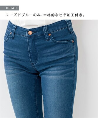 大きいサイズ (吸汗速乾)ストレッチライトデニム9分丈スキニーパンツ(もっともっとゆったり太もも)選べる股下 ボトムス 女性 レディース ニッセン nissen smileland スマイルランド 洗濯機洗いOK クロップド(7〜9分)丈 消臭 デニム 無地・無地調 ベーシック カジュアル