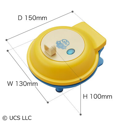 ミニオンのパンケーキが簡単に たった3分で焼き上がる 収納もお手入れもラクラク サイズ 約 幅 130mm×奥行き 150mm×高さ 100mm 重さ 約 580g 素材 本体:フェノール樹脂 プレート:アルミダイキャスト( ノンスティック加工 ) コード長 約 1m 電源 AC100V 50/60Hz 消費電力 350W 機能 温度制御安全装置( 過熱防止サーモスタット ) 保証期間 メーカー保証1年 付属品 レシピシート、取扱説明書( 保証書含む ) 備考 ・本体にスイッチはありません。